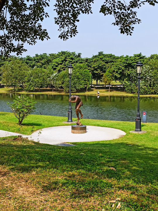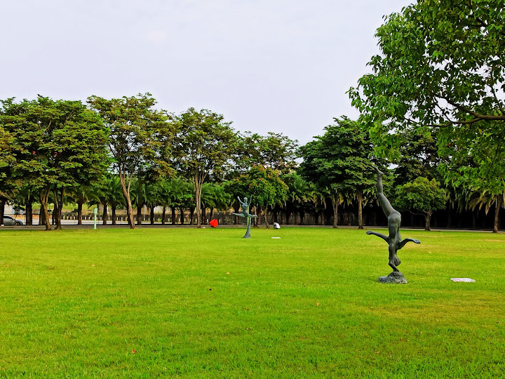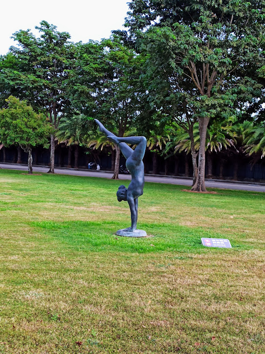 這天出門較晚,出保安站,由都會公園後方走進,就直接入館參觀,吹冷氣免曬太陽。因為上次已經把奧林帕斯橋前後左右拍了個透,這回便省下,不再重複。倒是離開之前,把上次沒走過的奧林匹亞草坪上,蒲添生的運動系列雕塑多拍了幾張。