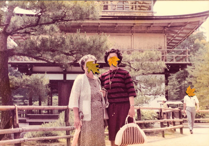 昨兒個不小心又翻到,仔細多瞧了兩眼,這張的背景,怎麼挺像是金閣寺啊?發現兩老似乎到過京都,略加搜查,找出其中十來張照片,果然是在京都拍攝,地點包括金閣寺、二条城和清水寺。金閣寺拍得多,但其他多半是大合照,就不貼了。