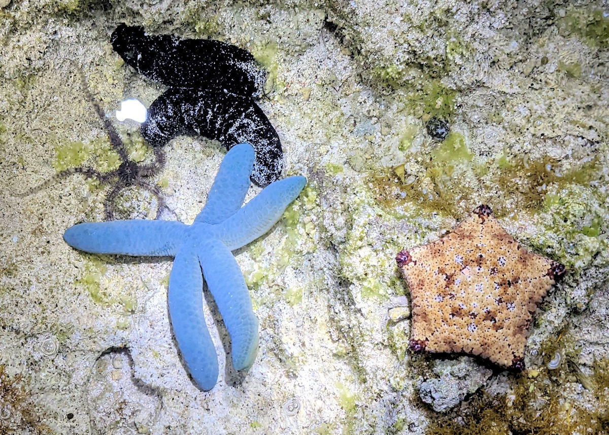 潮間帶導覽是夜間活動。我家小子這組同學,兩天一夜島上交通,主要租用機車,兩人一台,甚是方便。入夜到指定地點集合,換上膠鞋拉起褲管,就由業者帶隊,往海邊走去。可惜照片不多,以生物為主,相關資訊幾乎沒有,有興趣請上網搜尋。業者不多,一搜便有。