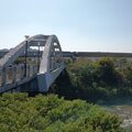 原來長江上游金沙江,自青藏高原南下,至雲南石鼓鎮,突然轉了一道馬蹄形急彎流向東北,被稱為長江第一彎,相當壯觀。然而因為不順路,以及似乎要多付一筆費用,旅行社為節省成本,常把團客帶到這個所謂「長江第一灣」(注意三點水)來。此地雖然建了座瞭望塔,卻只看得到半個馬蹄形,也就是地處下游的這段河「灣」。下圖左遠方便是馬蹄形底部,上游則在圖右山背之後。