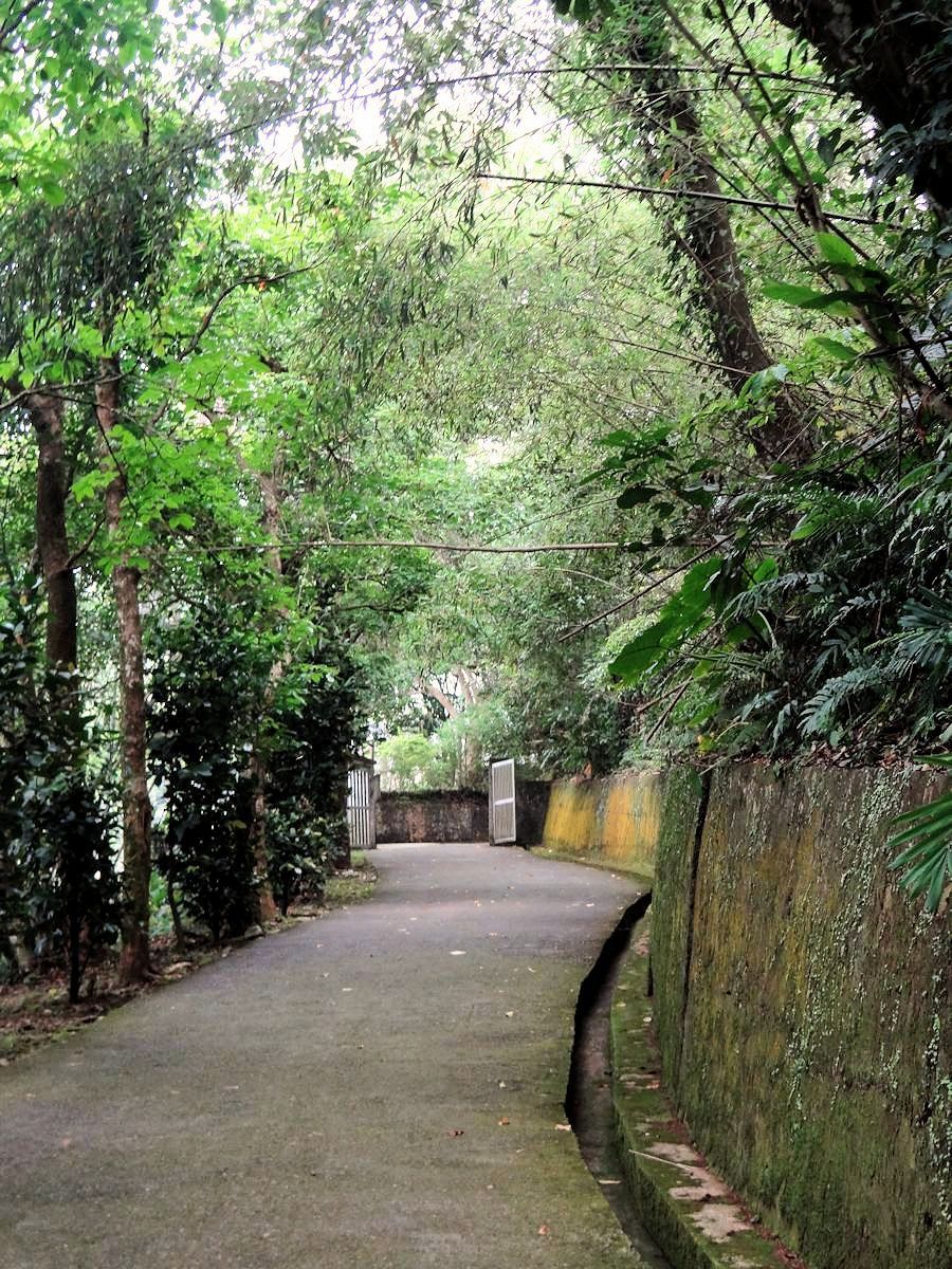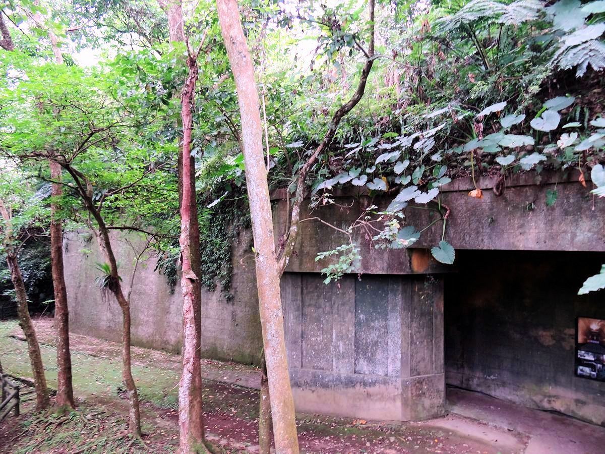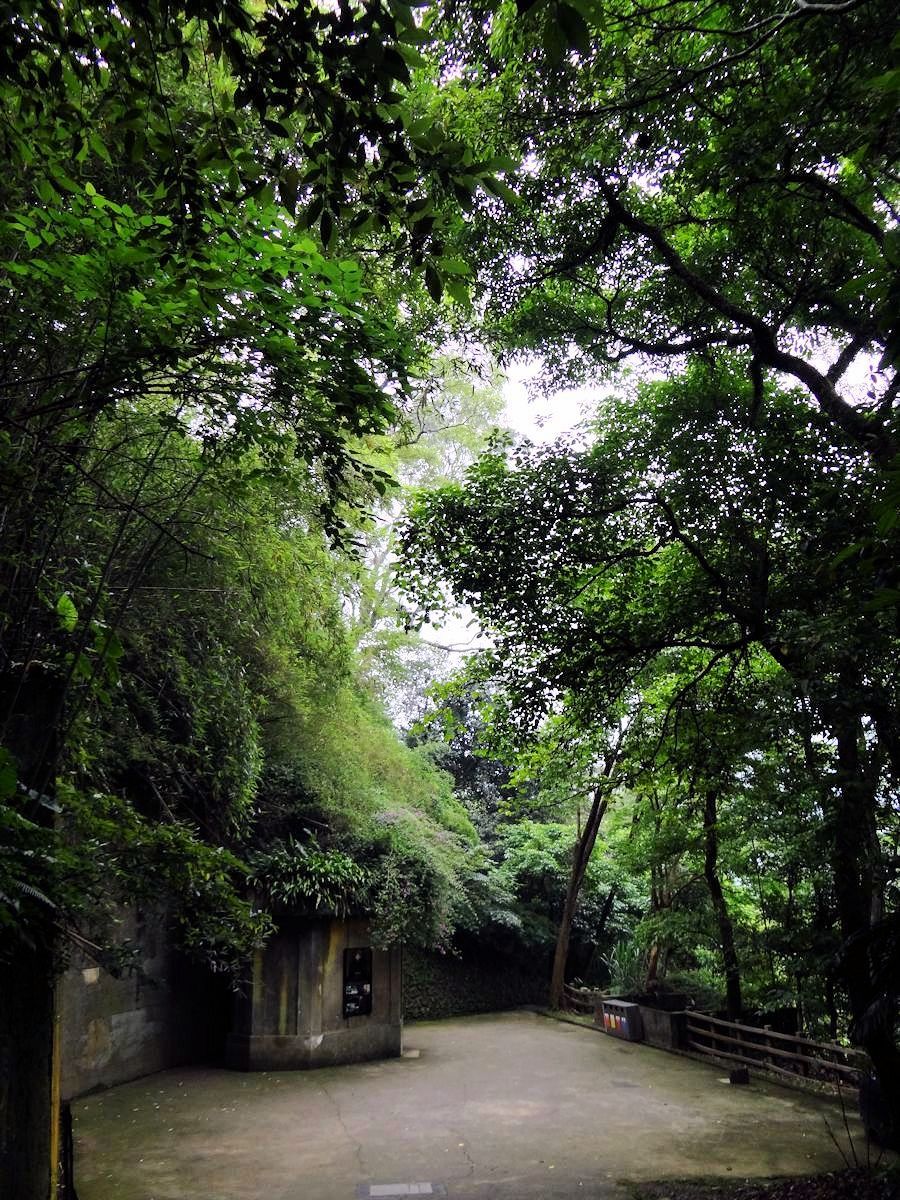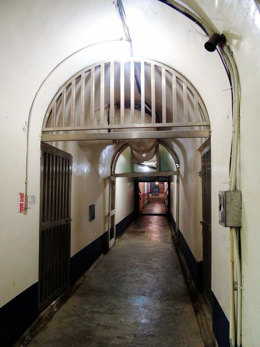 倒是近年來常被人提起的戰備隧道有點意思,就是偉人臨時遭受突襲需要落跑,有條隱密的通道。說隱密還真不容易找,沒多大的行館繞了半圈,才找到通往崖下的小徑,循線來到穿越山腹的隧道。隧道本身有空調居所糧食貯藏等戰備設施,萬一跑不掉,可以固守待援。作用有如傳說中白宮的地下碉堡。現今隧道內壁經過美化,不然平日冷冷清清,日光燈下恐怕頗有點陰森。另一端出口,沿一條平緩車道往上爬,便回到行館的北入口。