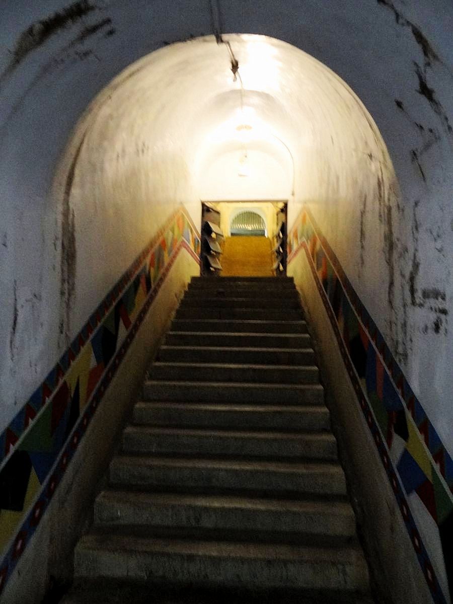 左:行館後方通往隧道的小徑,右、下:隧道入口
