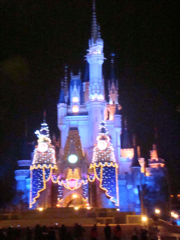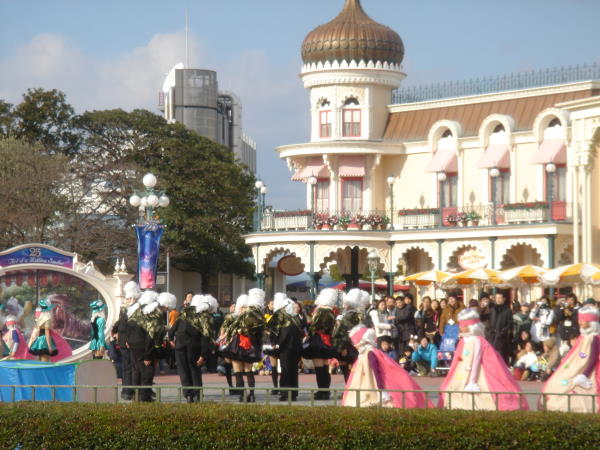被冬將軍搗亂的另一項損失,是沒去抽夜間表演的座位。週末人山人海,沒位子可坐就得比高。George仗著一點點身高優勢,總算還看得到,儘管身後的日本媽媽一直嘀咕。Elaine就不行了。做老爸的心想,這麼大老遠帶孩子來到心目中的夢想城堡,怎能讓她有所遺憾!