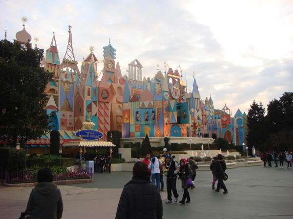 既然沒了FP牌,剩下的遊程就只能乖乖排隊。冬將軍尾勁仍強,空氣冷得像冰。所幸午後不再下雨,穿著也夠暖和,站著不動的時候還頂得住。接下來玩小小世界、微縮世界探險、巴斯光年和維尼小熊獵蜜記,除了幽靈公館輪休之外,有FP牌可抽的七大設施當中,只漏了一座太空山。就第一次逛迪士尼的兩個小朋友來說,算是成果豐碩了。
