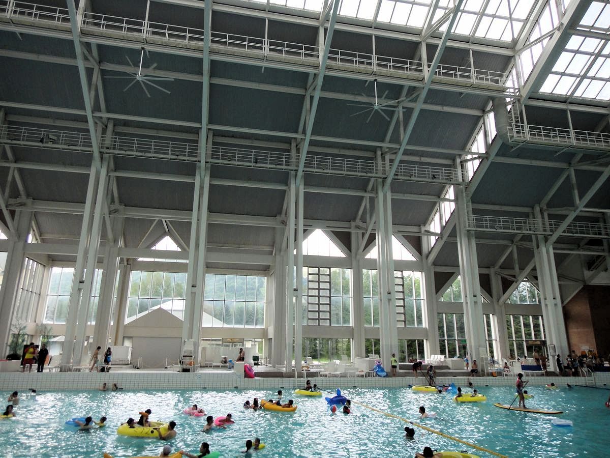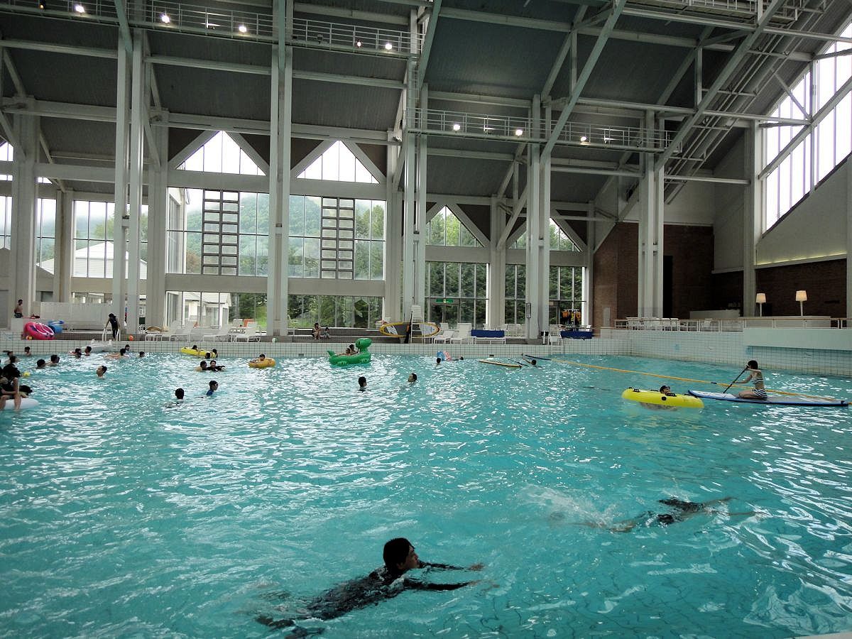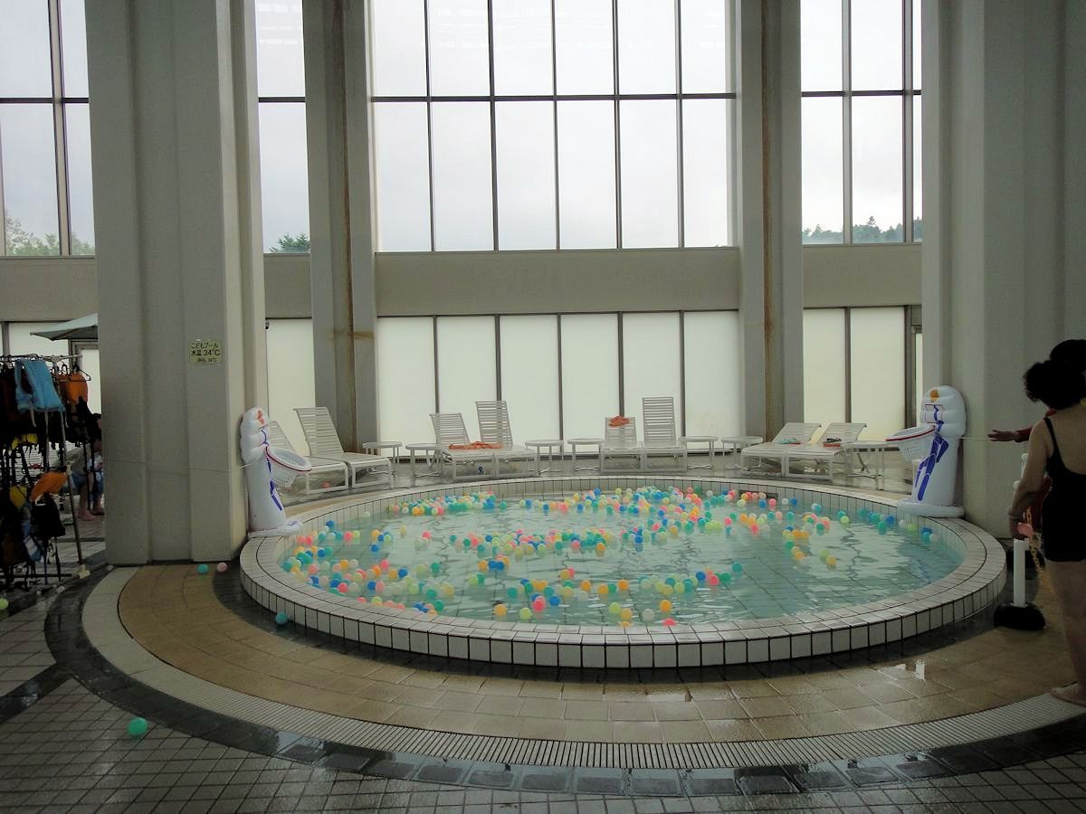 林木之湯是戶外裸湯,顧名思義是位居森林之中。入口則在微笑海灘側門,湯池和游泳池各有獨立更衣室,但沒有嚴格劃分。領隊建議選一邊放即可,免得把衣服搬來搬去。游泳池更衣室當然大得多,可以當主要基地。