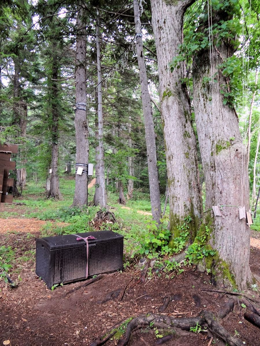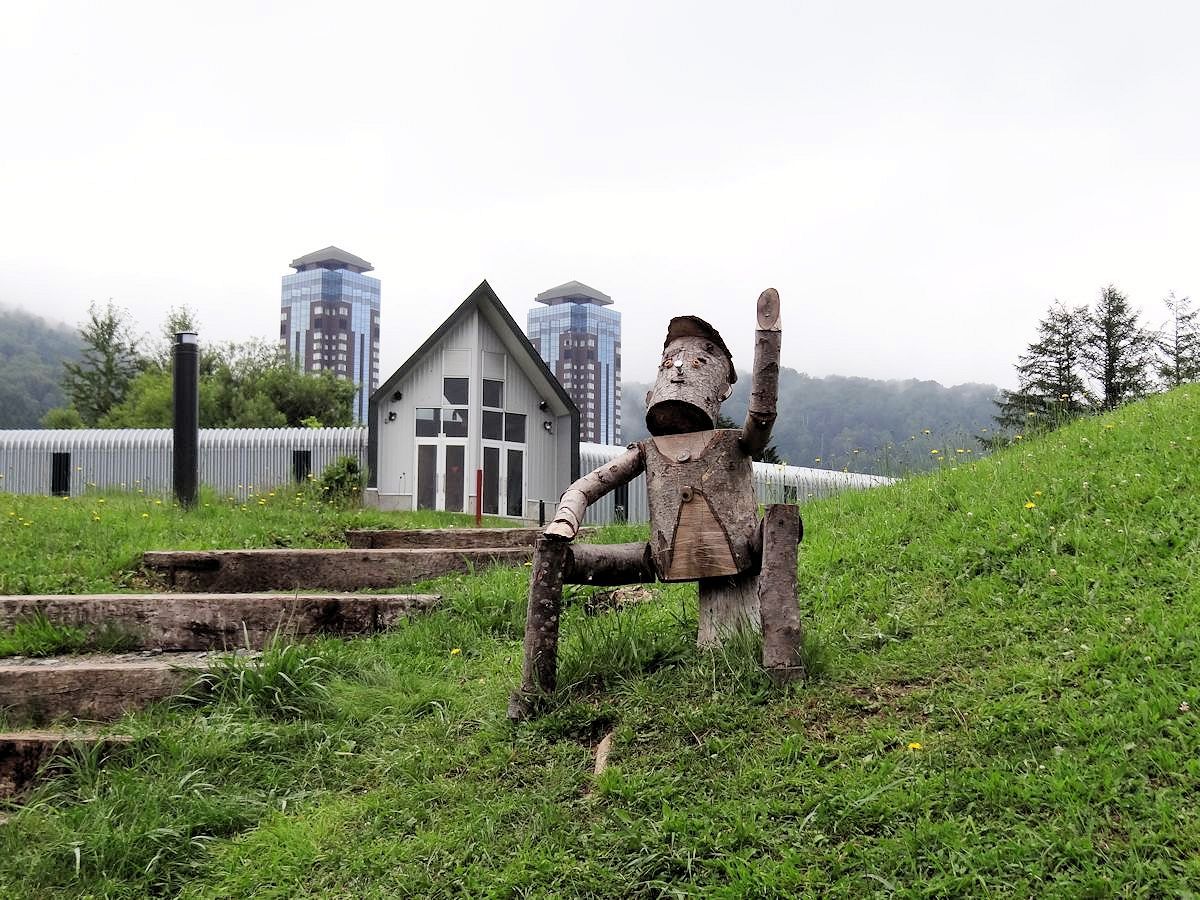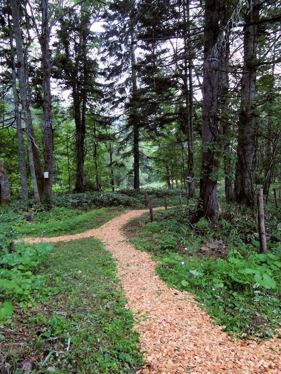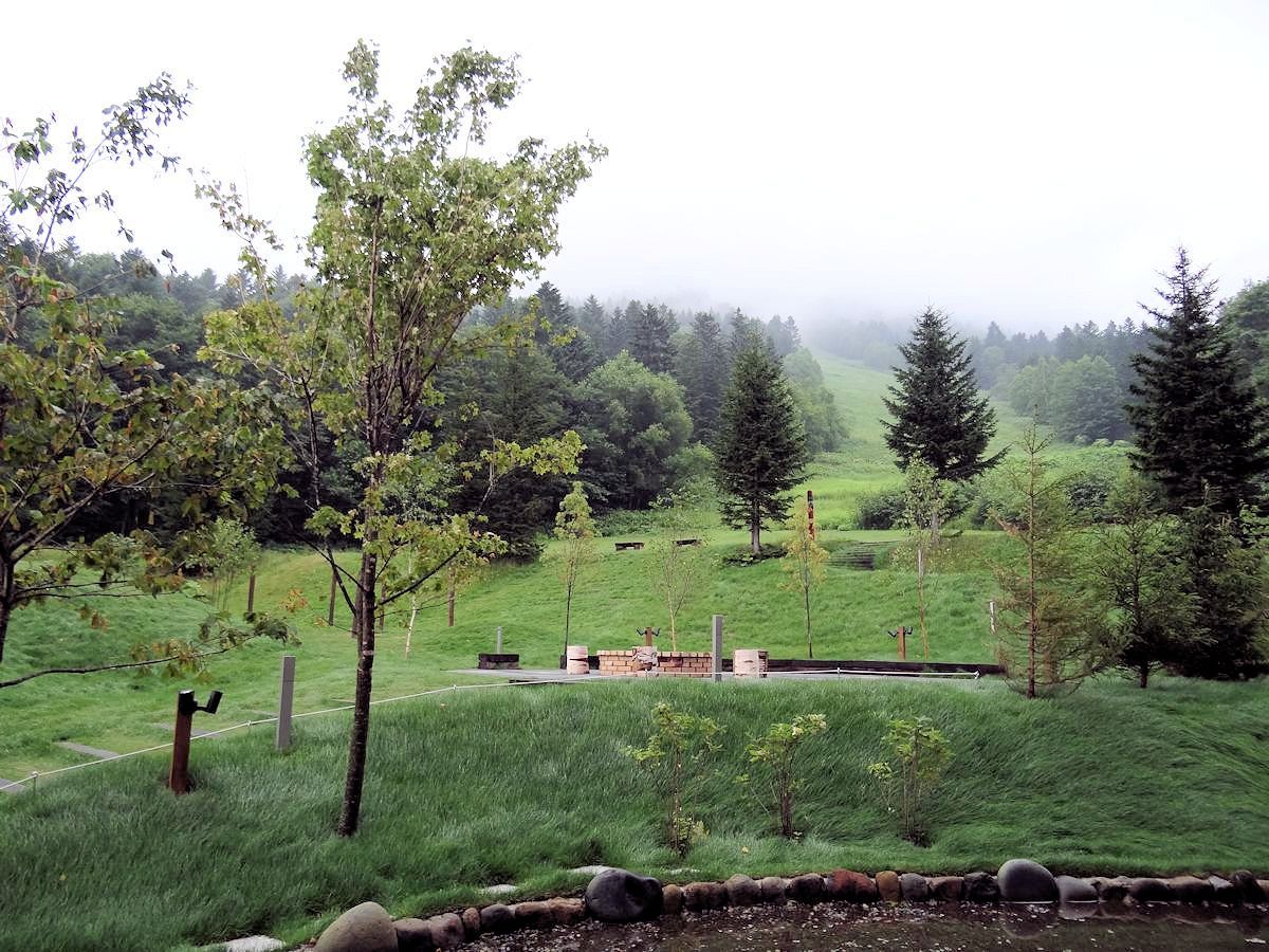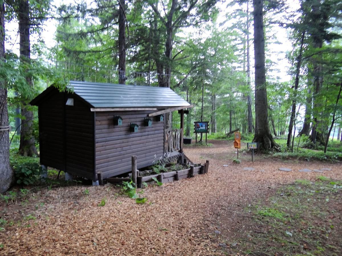リゾナーレ到塔娃之間的樹林裡,有一系列以「ニポ(NIPO)」為名的幼兒活動場所。「ニポ」是愛努語「樹的孩子」之意,不過當時我們並不知道,嘻嘻哈哈唸著,變成中文「二寶」。給孩子玩兒的地方,特別注意安全,泥濘小徑都灑上木屑,免得滑跤。