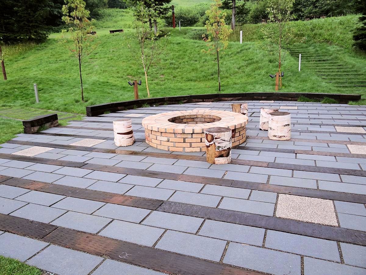 田野間有遊樂場、花圃等