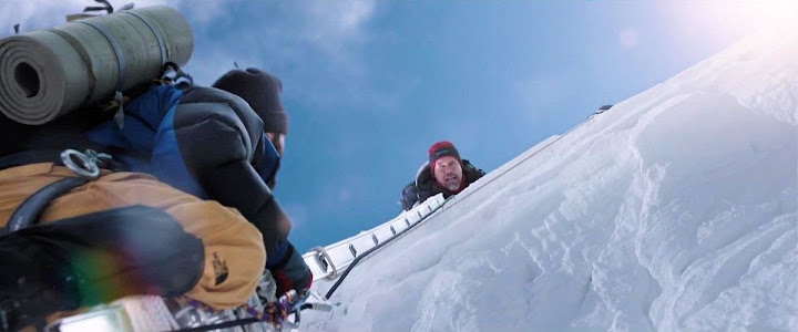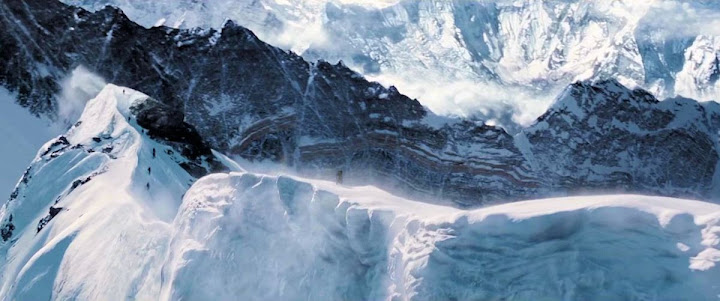 暫且跳開,為沒看過電影的人介紹一下環境。聖母峰(珠穆朗瑪峰)高達海拔8848米,乃世界第一高峰,理所當然成為登山界的聖杯。八千公尺以上稱為死亡地帶,有兩大非比尋常的致命因素:缺氧和低溫。前者因空氣稀薄,氧含量常低於海平面的三分之一,極端狀況如暴風雪可降至七分之一,大多數人(包括登山家)不靠氧氣筒無法存活。後者則常低於零下廿度,人體必須持續產生熱能抵禦寒冷,縱使端坐不動,體力依然不斷流失而終究凍死。片中霍爾的開場白說得好:「登上死亡帶,你的身體便進入一路衰亡的過程;我們的工作,則是在你真正死掉之前,把你帶回來。」