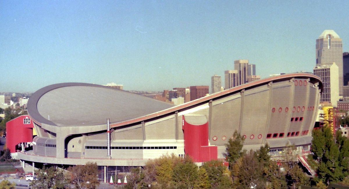 1983年完工的馬鞍體育館,也躬逢88年冬季奧運盛會,成為比賽場地之一。最早的名稱就是奧林匹克馬鞍體育館(Olympic Saddledome),後來Canadian Airlines成為贊助廠商時,拿掉奧林匹克字樣,換上自己的公司名稱,還把公司logo畫在屋頂,引起許多當地人不悅。2000年時,一家叫Pengrowth的公司取代Canadian Airlines,把名稱再改為Pengrowth Saddledome。不過,至少這座極具特色的屋頂,不再畫上任何宣傳圖樣了。