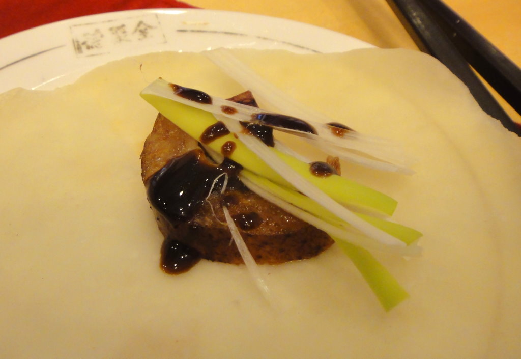 鴨肉大葱捲餅皮。台灣到處可見的北京烤鴨,源頭就在這兒