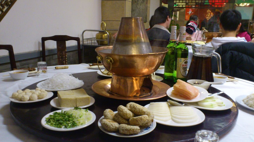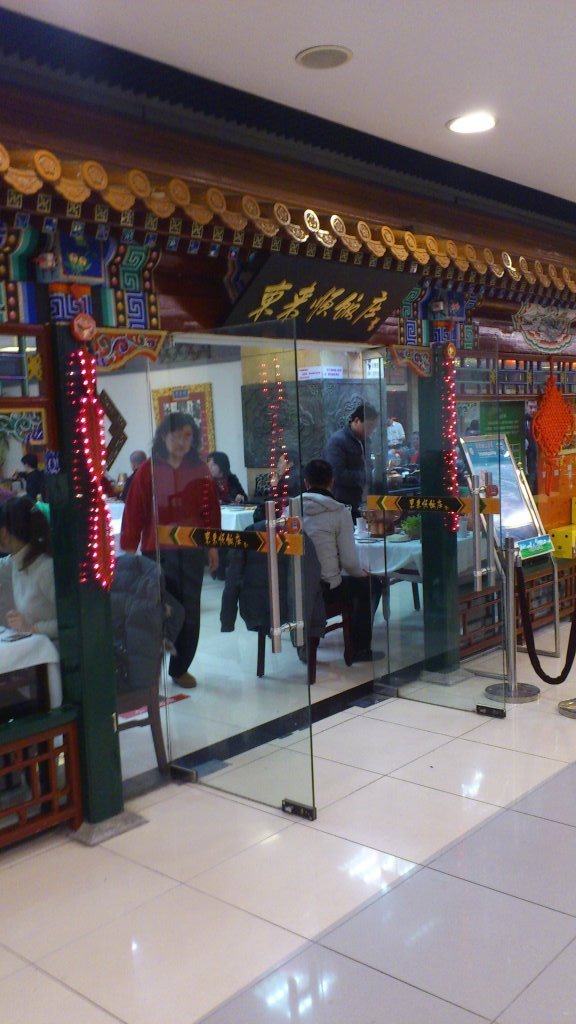 東來順,去的是王府井大街、新鴻基大樓裡的分店,門面裝潢都現代化,少了點兒百年老店的情調。不過東來順是大樓內少數幾家過年還營業的店家,鬧熱滾滾,牛羊肉無限供應。導遊事先交待,這是穆斯林鋪子,可別不識相討豬肉吃。其實羊肉臊味兒不重,沒豬肉也行。