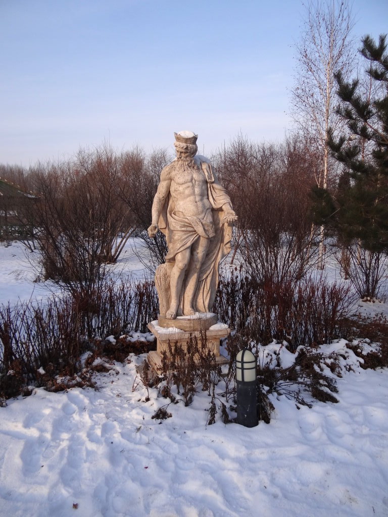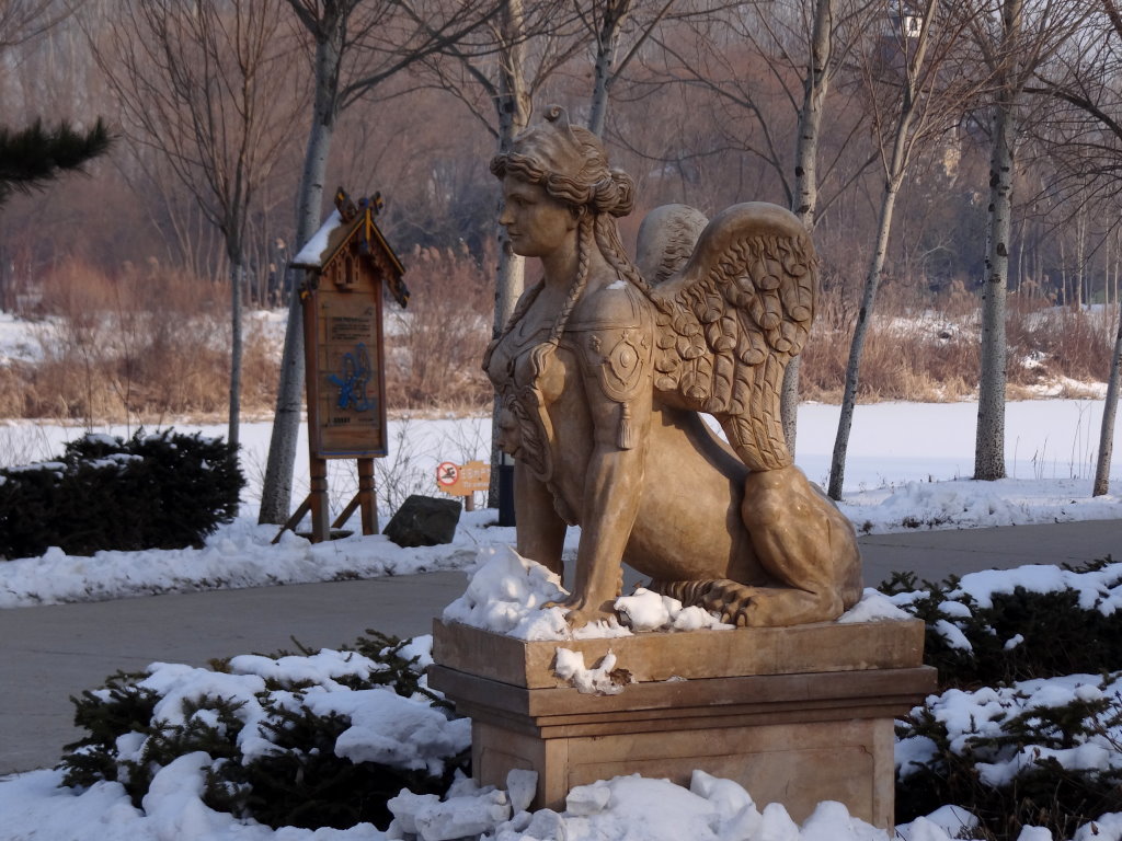 來訪前下了點雪,無意間在雕像身上製造一點令人發噱的效果。右下圖手中握了霜淇淋,左下那兩位捧著的大白米飯,可真香得饑腸轆轆哪!