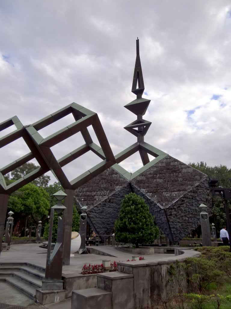 這座巨大的紀念碑在公園裡矗立十幾年,一則很少經過,再則遠觀缺乏吸引力,反而因政治圖騰產生拒斥,從來沒有接近過。這天偶然穿越公園,望見那支碩大避雷針,心想左右無事,不妨走近瞧瞧。