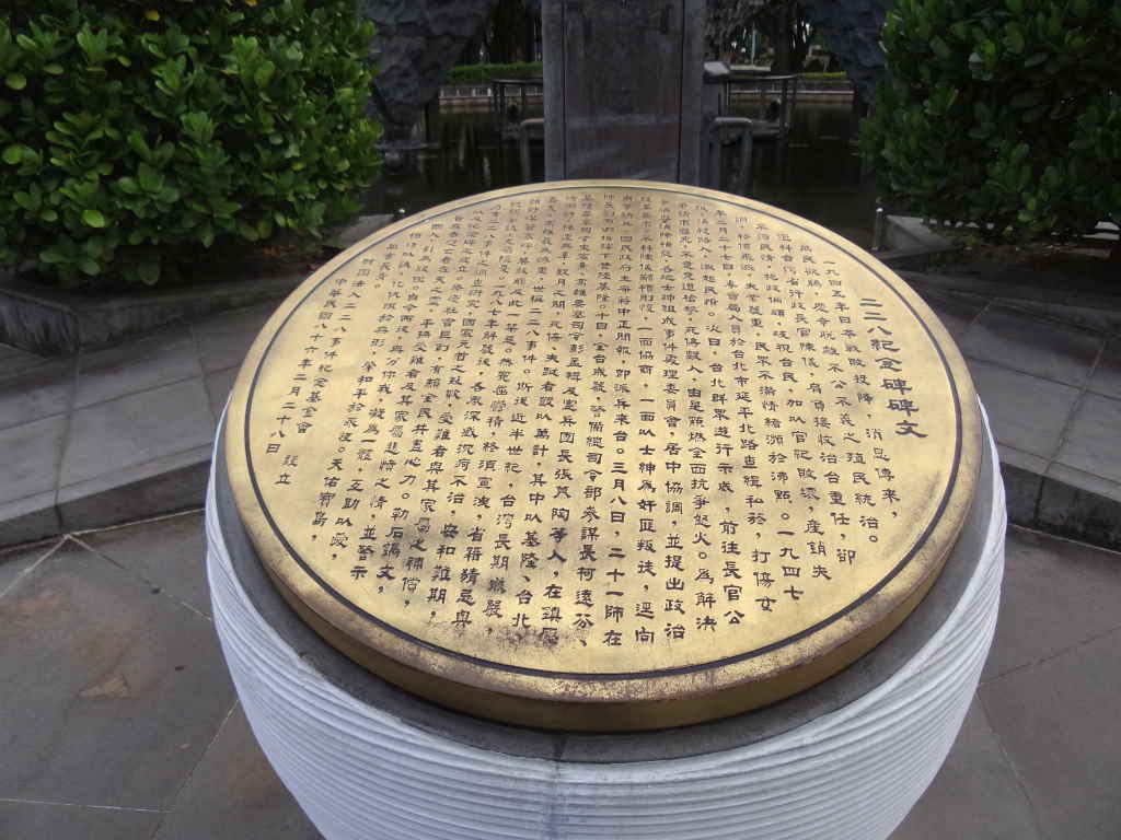 地球的北迴歸線經過台灣,所以在球體碑23.5度切一平面,和赤道平行,碑文放在上面,代表二二八事件發生在地球北迴歸線上的一個島嶼上。(註:事先不曉得角度也有含意,所以沒拍)