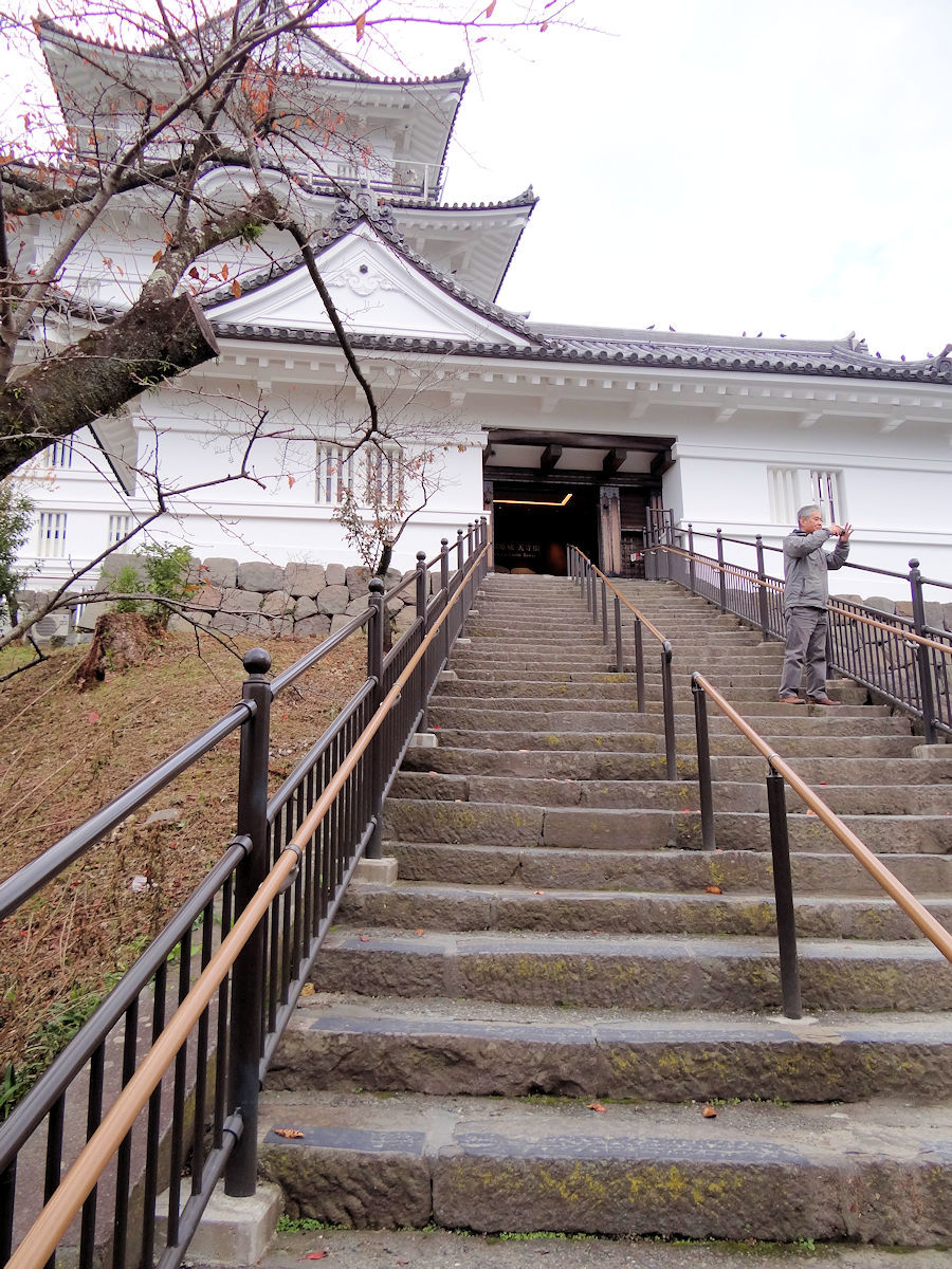 箱根行的一大早,先搭JR到小田原,轉乘小田急線。小田原城離車站不遠,考慮箱根周遊時間不好控制,回程也許太晚,決定先去參觀,不料反而在此花下不少時間,以致箱根周遊後段兼程趕路。所以若要玩得舒適愜意,安排兩天,包括山上一夜住宿,可能較為理想。