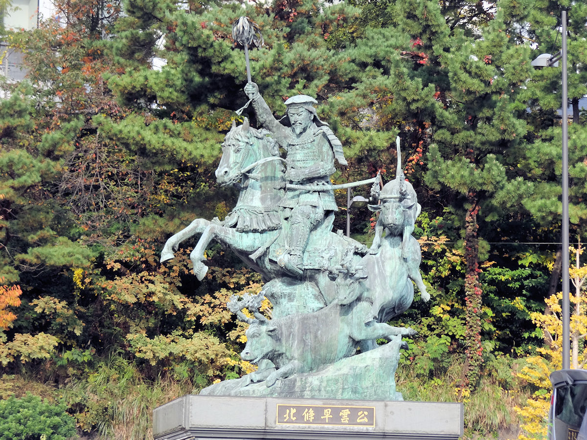 小田原城最早於1417年由大森氏所築,在後北条氏經營下成為一代名城。北条早雲則號稱史上第一位戰國大名,以實力(通常指軍力)攫取地位的代表性人物之一。其出身頗有爭議,原名伊勢新九郎,北条早雲這個名字則是嫡子氏綱改姓北条時所取。早雲指其陵墓所在的箱根早雲寺,北条這個姓氏,則顯然有意與前鎌倉幕府執權北条氏拉關係,史稱後北条氏。早雲於1495年擊敗大森氏,入主小田原城,縱橫捭闔,成為一方霸主。