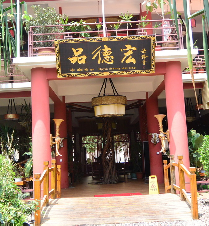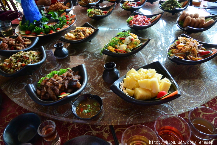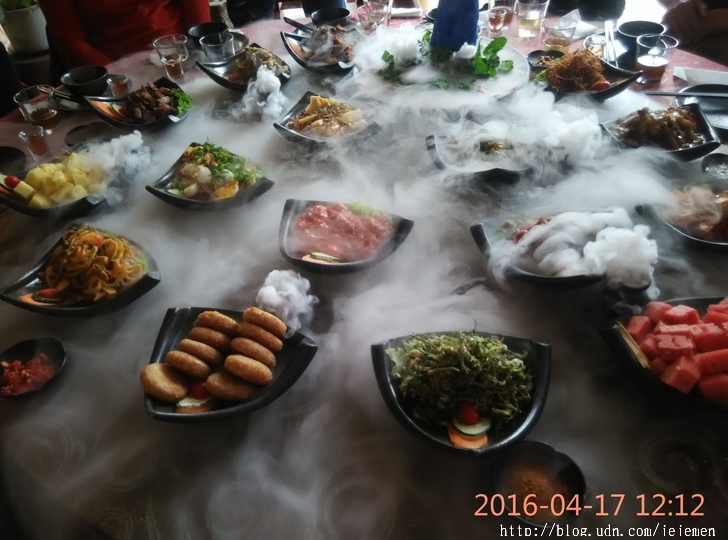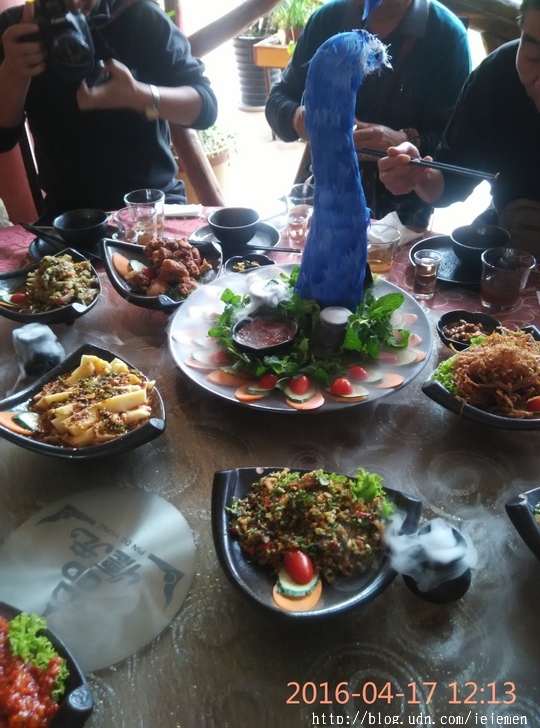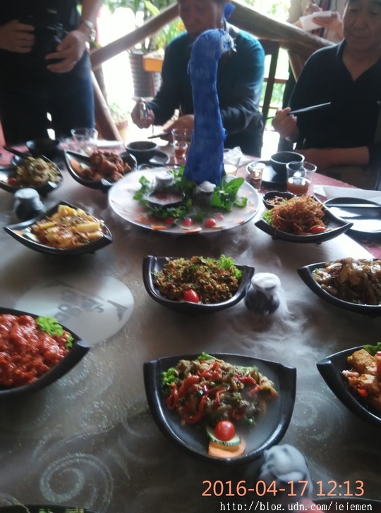 中餐品嘗具有民族特色的芒市人家傣族風味宴【孔雀宴】(價值680元/桌),感受舌尖上的美食。很可惜,孔雀宴還沒擺好,泉州的一位村長大土豪就說要吃,我還為了阻止他動筷子,和他嘻笑逗得大家都樂陶陶。