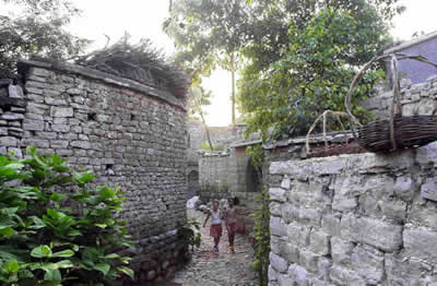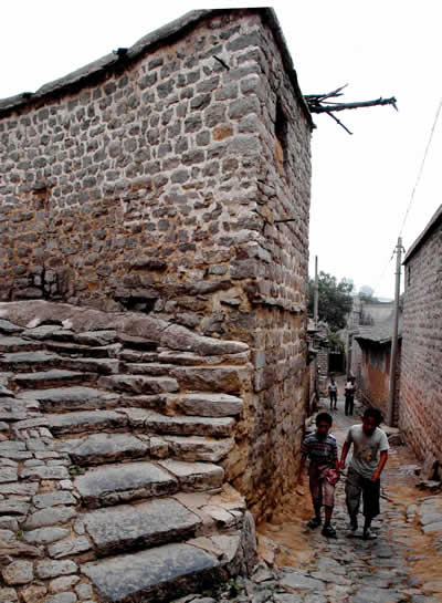 首圖︰兩名小朋友在于家石頭村的一條胡同內玩耍