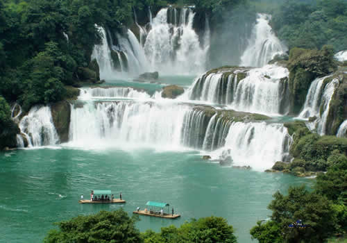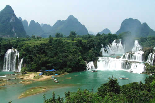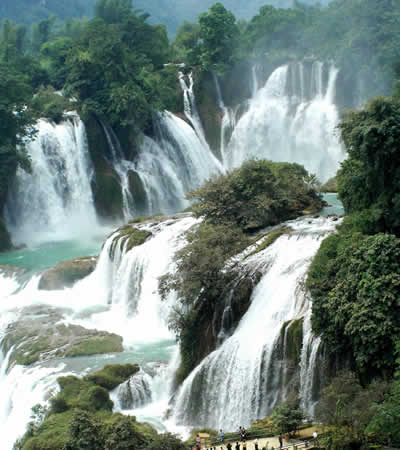 廣西大新縣境內的德天瀑布位於中越邊境交界處,歸春河上游,瀑布寬100多米,縱深60多米,落差近50米。