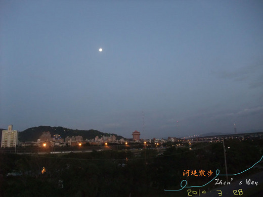 河堤上有不少人在散步,也有閒坐著的。河堤是個很棒的觀景處,圓山飯店,101,橋,在河邊騎車運動溜狗的種種人們。還有,不到半小時就一班的飛機降落在松山機場。雖然,我依然沒看到夕陽的真面目,但是我享受了Magic Hour,這是一天裡最美的時刻。