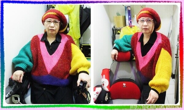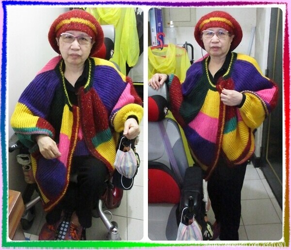 不對稱~~左長右短的披肩&左寶藍右紫紅的背心。
