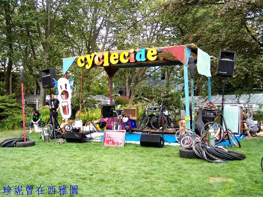 除了精彩的音樂之外,Bumbershoot還有許多有趣的活動和攤位展示。今年最有趣的戶外活動就是 Cyclecide。這個團體以腳踏車為媒介,來傳達音樂、藝術和表演。他們在Bumbershoot的會場,設置數個腳踏車遊樂中心。