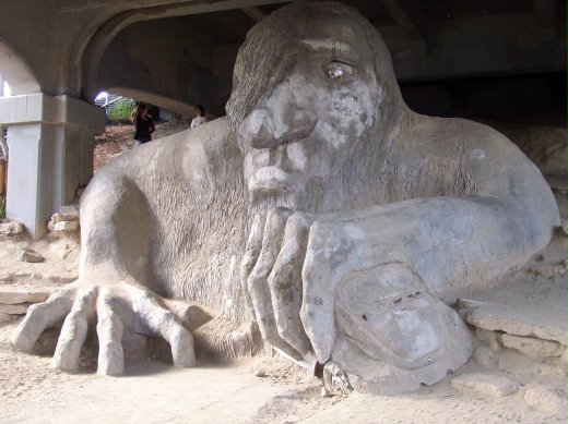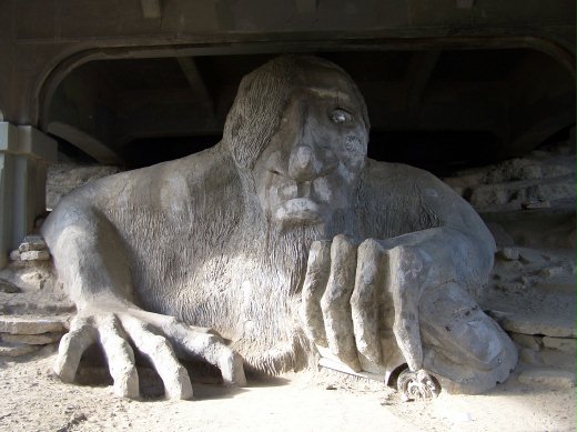 這個Troll(意思是「巨人」)位於西雅圖市Fremont地區。只要你在地圖上找到Troll Avenue North(巨怪北街),一直沿著上坡走到最末端,就可以看到這個巨怪矗立在99號公路的下方,好像在幫忙頂著這座橋。