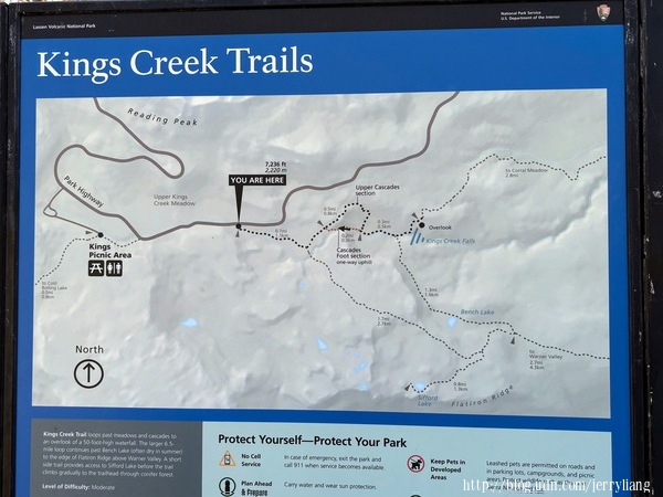 國家公園有很多景點,順著89號公路前行,有漂亮的景點就可以停下來欣賞.我們沿途看了 Sulphur Works,Emerald Lake,Helen Lake,Lassen Peak Parking and Viewpoint,(不只這些)最後去造訪重頭戲 King Creek Falls.