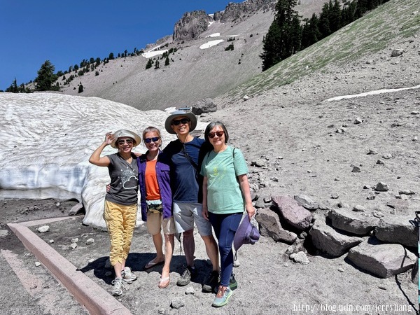 我們在 Lassen 火山的登山步道前留影,留待再回來再爬