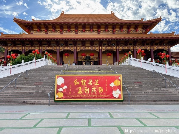 我家離洛杉磯西來寺不遠,如果有時間每年會去領臘八粥,今年也不例外.寺廟方公告從早上九點開始,一直施粥至下午三點為止.為了避開人潮我大約 9:30 到西來寺,停車場卻早已停滿車輛,只好停在山門下方的街道上.