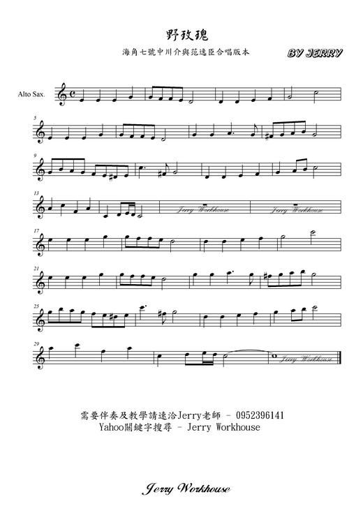 薩克斯風樂譜下載 - 海角七號 - 野玫瑰