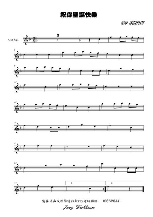薩克斯風樂譜下載 - 祝你聖誕快樂