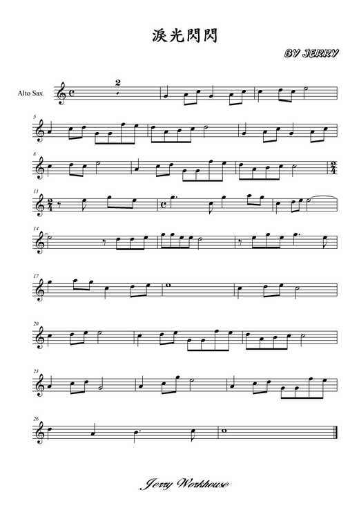 薩克斯風樂譜下載 - 陪你看日出(日劇淚光閃閃主題曲)