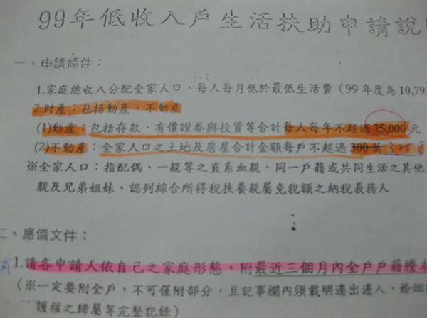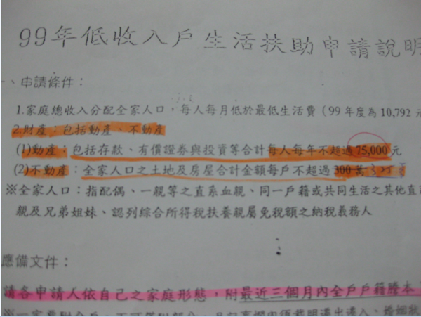 低收入戶動產(存款與投資)限額每人以