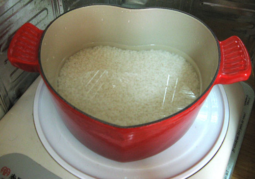 用鑄鐵鍋煮飯只有一個大原則,就是米要泡透,泡透的米煮起來快又好吃。將泡好的米放進愛心鍋裡,幾杯米就放幾杯水,不過由於米泡過了,所以我都不會把水量放足,會略略的少放一些。然後開120度的溫度下去煮,嘿!不要懷疑,家裡沒瓦斯,我做飯做菜都是靠一個電磁爐,煮大概10-15分鐘,看到鍋邊水氣一直冒出來,就把溫度轉到90與120度間,如果不降一點溫度鍋底就會產生鍋巴,再煮5分鐘就可以熄火,放到飯桌上去悶個十分鐘就可以吃了,很簡單吧!