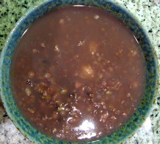 不知道為什麼,好像有些人總吃不來這種十穀粥,嫌它難吃,但我認為,這是因為他們沒有吃過真正好吃的十穀粥。好吃的十穀粥,除了材料用得好外,最重要的是要煮透,煮到粒粒糧心皆爆開,這樣子的粥,吃起來比白米粥多了股香味,口感也是QQ的,炒個菜配上點醬瓜,轉眼碗底就見空了。