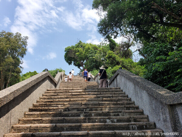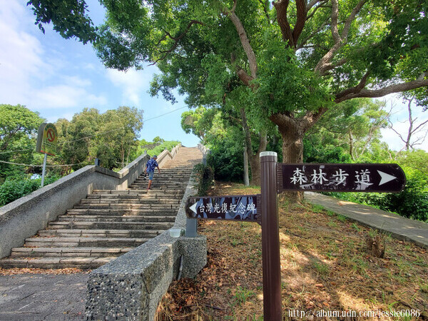 台灣光復紀念碑須爬階梯而上, 一旁是森林步道,因時間有限,沒有走步道
