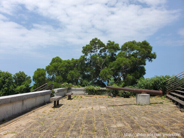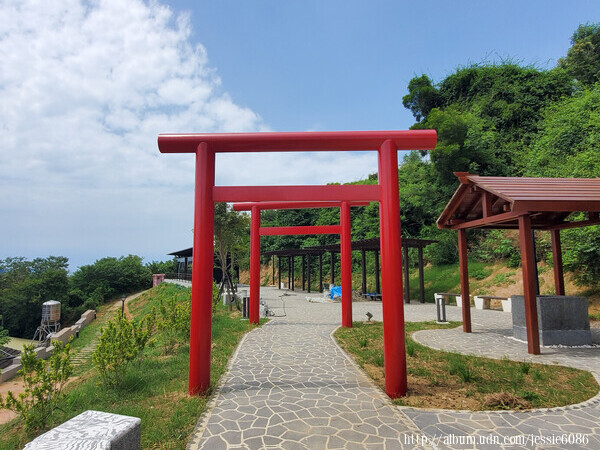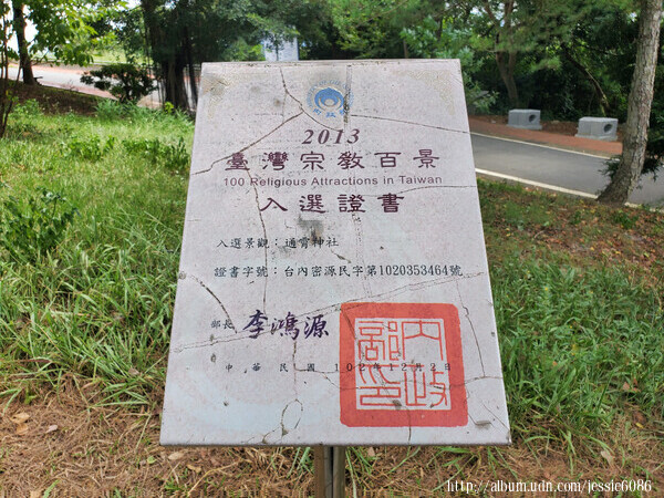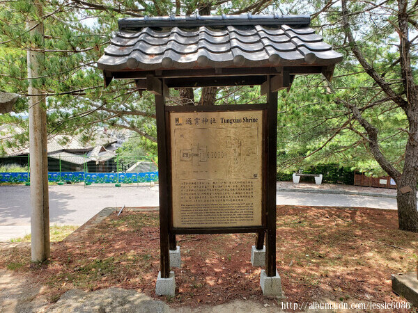 我們先往台灣光復紀念碑開始參觀,上坡階梯,登上至高點的台灣光復紀念碑,這裡有個雙3角點,除了紀念碑外,觀景台還有一個砲管,居高臨下,俯視通霄海岸,風光緻麗。通宵神社主殿與幣殿只剩下基座,拜殿雖然外觀完整,卻也很老舊,周圍目前整建中,禁止進入。