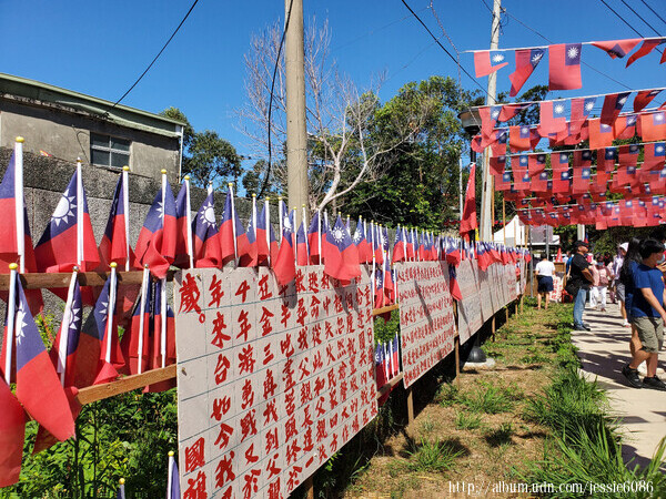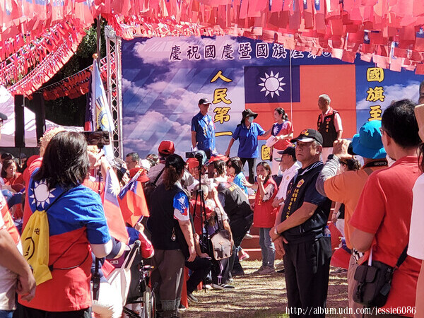 今年是85歲張老旺先生第31年的自費舉辦國慶升旗,熱心的政治人物和地方名人也出資捐贈國旗,使得會場旗海非常壯觀。升旗典禮時,大家大聲唱著國歌、國旗歌、梅花、中華民國頌,展現愛國的情操。