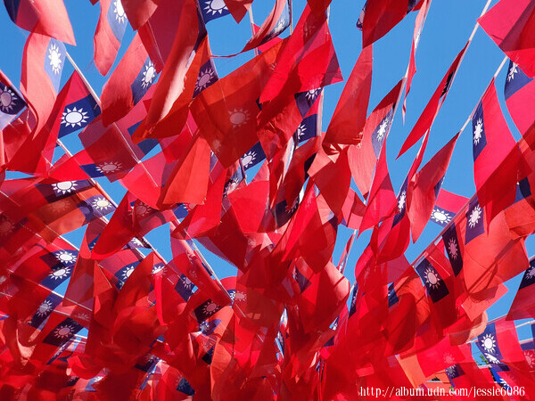 今年跟往年一樣來到桃園參加國慶升旗典禮,去年在龍岡圓環旁的公園舉行升旗典禮,因高速公路上塞車,錯過了升旗,今年提早出門,順利的在10:00以前抵達。小小的公園,千人聚集,有人身穿國旗裝,有人臉上、手臂用紋身貼紙印上國旗,攜家帶眷參加國慶升旗典禮。