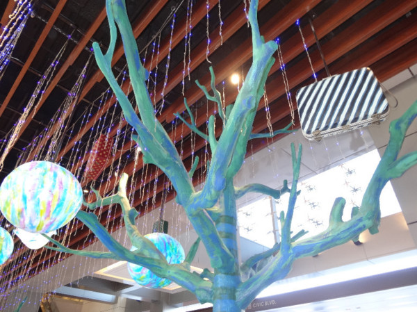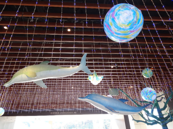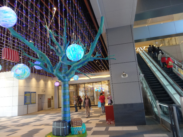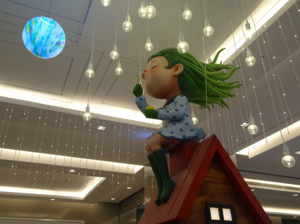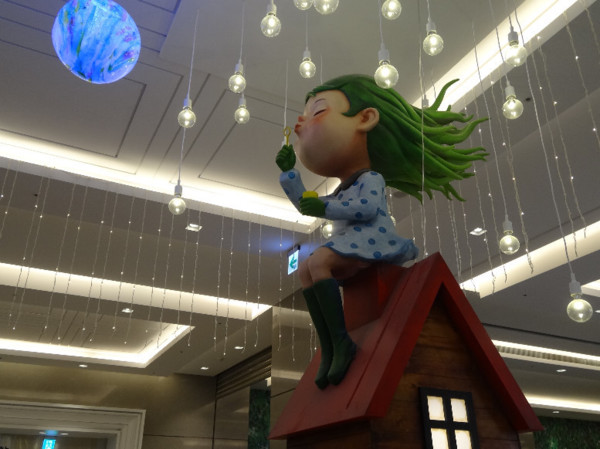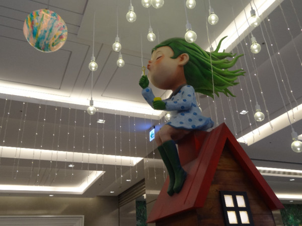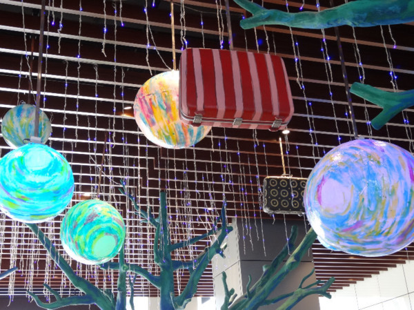 上樓後,不久,就看見天花板上的行李箱和彩色圓球