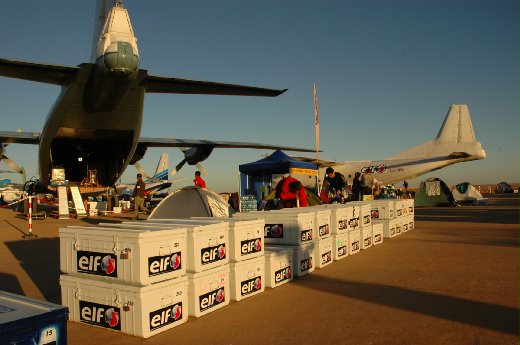 像這次的比賽中,大會從歐洲各地徵召了20架中型運輸機,及17架直升機,每天載著大會的工作人員、醫療人員及記者們一站一站往前推進。這些飛機各司其職,有的運油、有的載貨、有的載人,還有些每天巡航比賽路線,隨時偵測賽車的狀況並且適時給予退賽的車手協助。