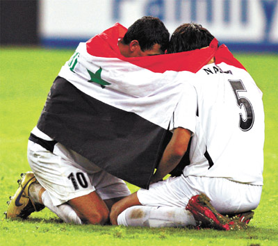 就是這一支集合了伊拉克各教派的球員,眾志成城、一路淘汰澳洲、韓國和沙特高歌猛進,以不敗戰績贏得世界的讚歎與敬重,為生活在苦難中的同胞獻上可貴的榮耀與無上喜悅。