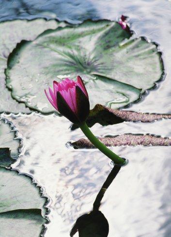 躲在藝術館簷下看望植物園夏日午後靜靜綻放容顏的滿池荷花