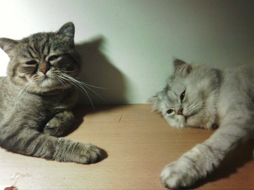 另一隻是英格蘭折耳貓與金吉拉生的混種貓,