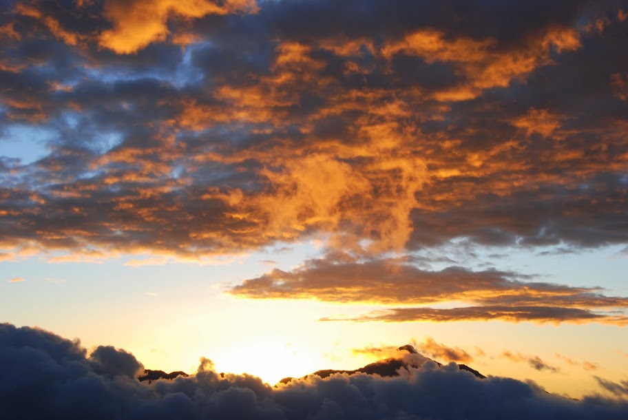 中央尖山的日出。很難以筆墨來形容現場震攝人的壯闊景觀。有謂:“火燒雲”奇觀。