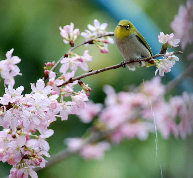 綠繡眼1﹝連續動作‧標題:唉!又下雨了!花蜜沾了水,不甜了!﹞