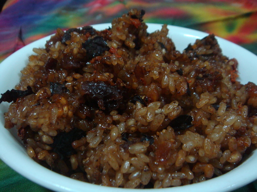 如今每當冬天的寒流陣陣襲來,我就特別懷念深夜的酒燜米糕,這時我也會煮一些記憶中的米糕解饞。現在的物資比起幼時豐富多了,所以我會放一些常用的養生品,例如米酒用紅酒替代,白糖改為黑糖,另再加入枸杞及黑棗,桂圓當然是不可少的,而煮出來的米糕,色澤深了許多,看起來更有味道。