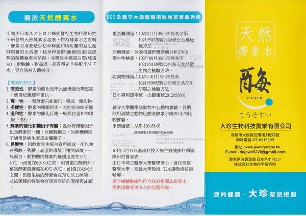 每種器官組織和全身100個百億細胞就靠著這些酵素化學的反應及它們的能量來維持生命。