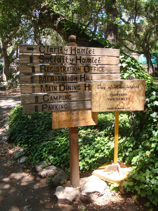 因為這次來參加的是家庭禪修營(family retreat),幾乎都是年紀約莫三四十歲的家長,帶著嬰兒、幼兒或青少年來參加禪修,每年Deer Park的例行禪修,今天聽說特別多人,有150成人+42小孩參加。先前問過單身能不能參加,Deer park很親切回信: We are all family,當然歡迎我參加,但身處於疲倦的家長跟精力過剩的小孩當中,單身的我處境有些奇怪,但也因為如此讓這次的禪修行程很有彈性,因為小孩常有突發狀況,許多活動也針對親子,而我就多了些自由時間可以在Deer Park的山間慢慢走路。